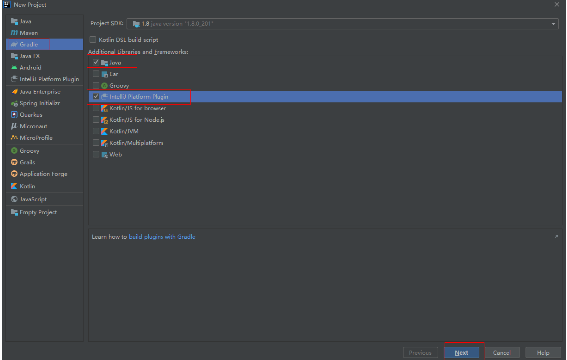 也可以选择创建Gradle工程,选择 File | New | Project,左侧栏中选择 IntelliJ Platform Plugin 工程类型;