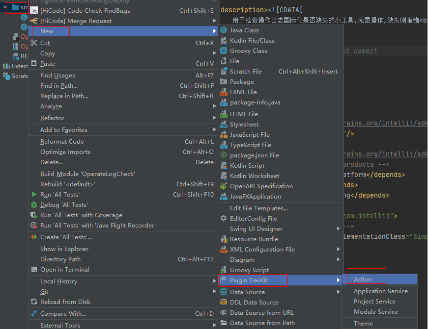 第一步:src目录右键->New->Plugin DevKit->Action