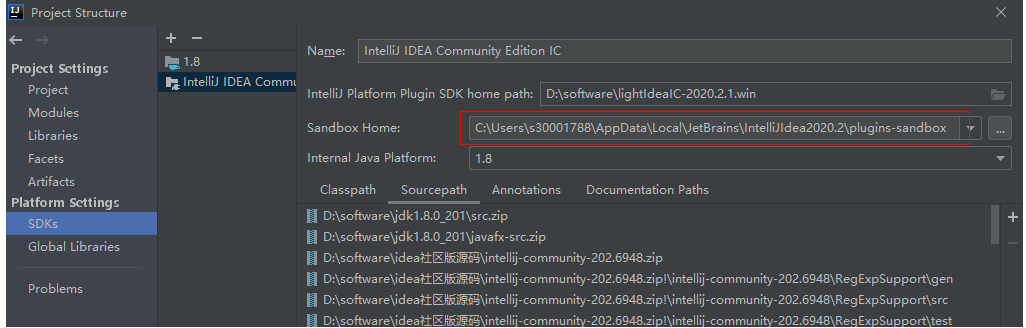 即在创建 IntelliJ Platform SDK 时默认指定的 Sandbox Home;