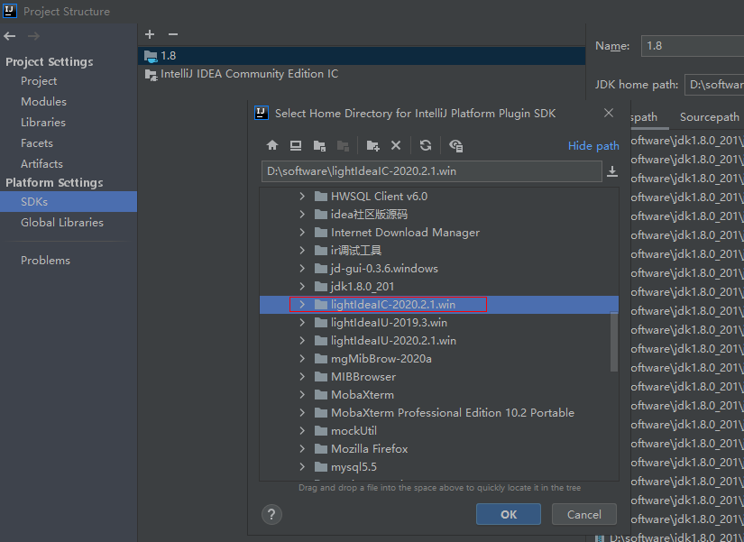 点击 + 按钮,选择Add Intellij Platform Plugin SDK,指定 home path 为 IDEA 的安装路径[如果要调试,最好装个社区版的idea,这边选择社区版的安装路径]